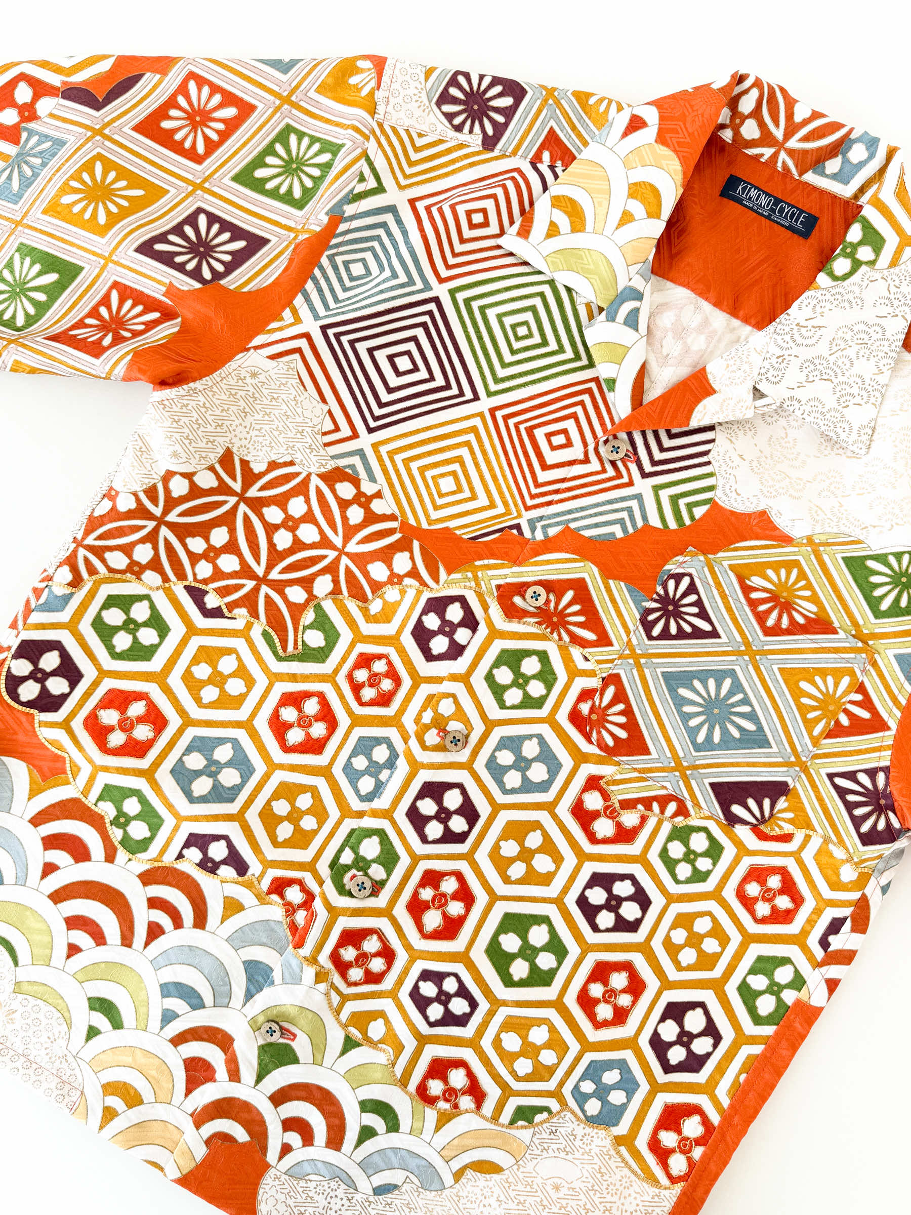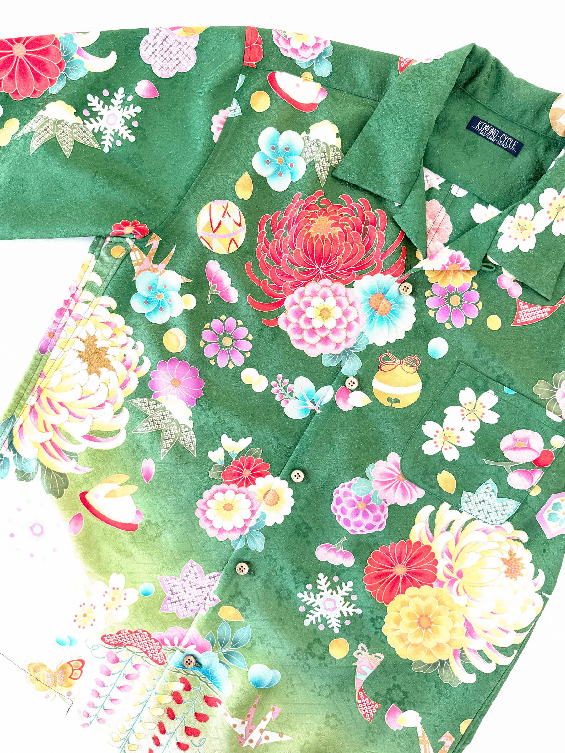 KIMONO-CYCLEにて販売する全ての商品は1品物であり汎用品ではございません。元々は「着物」としてご愛用されていた高級呉服をリメイク・リサイクルして弊社完全オリジナルにて製造・販売しております。