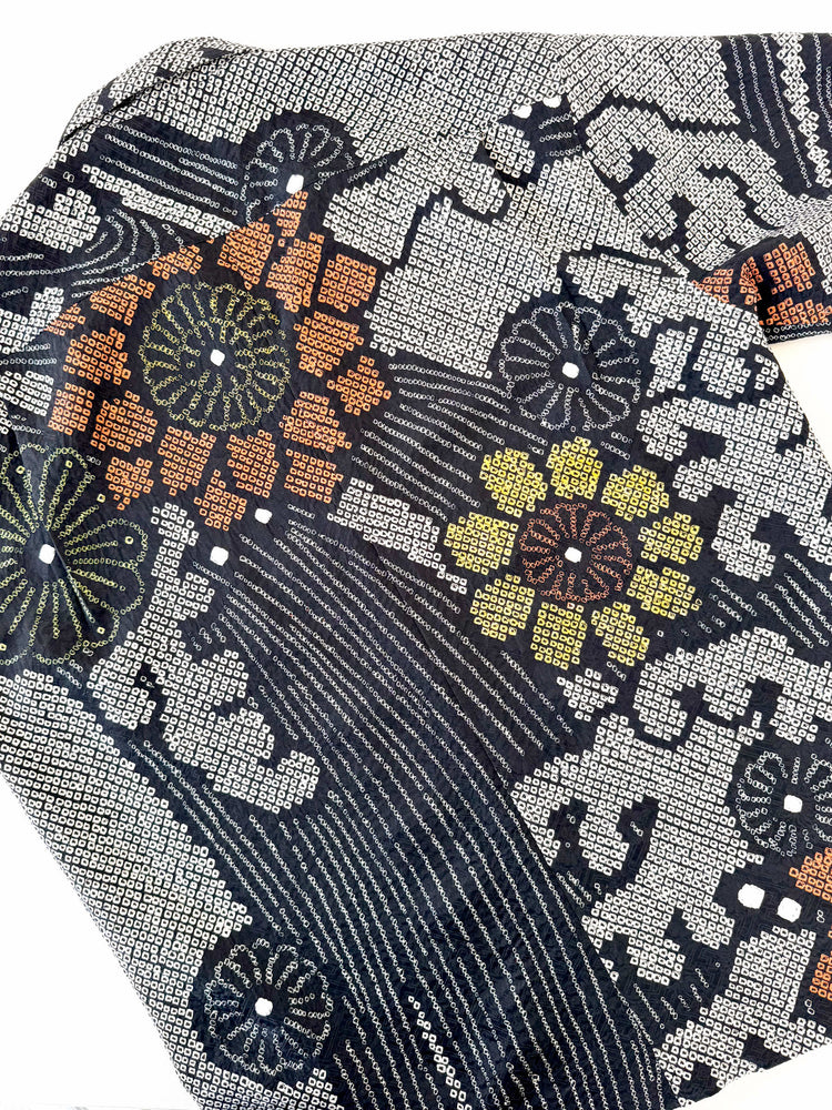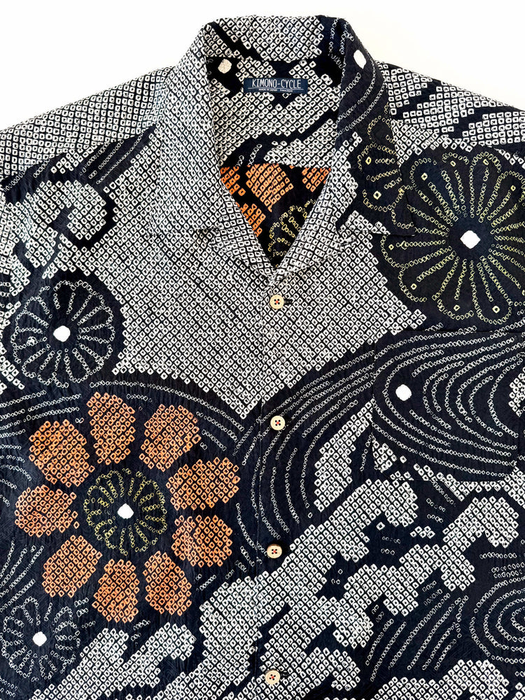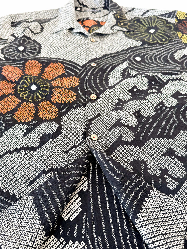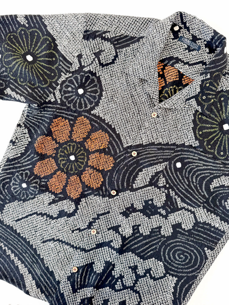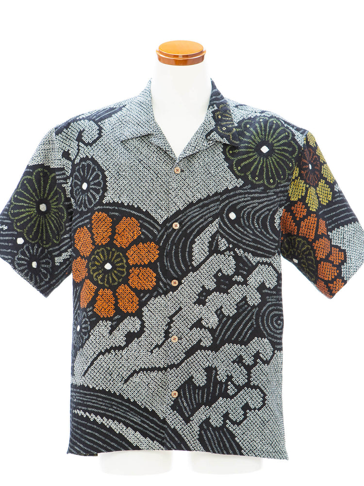 着物アロハシャツ「黒絞りの夏B」AH100455