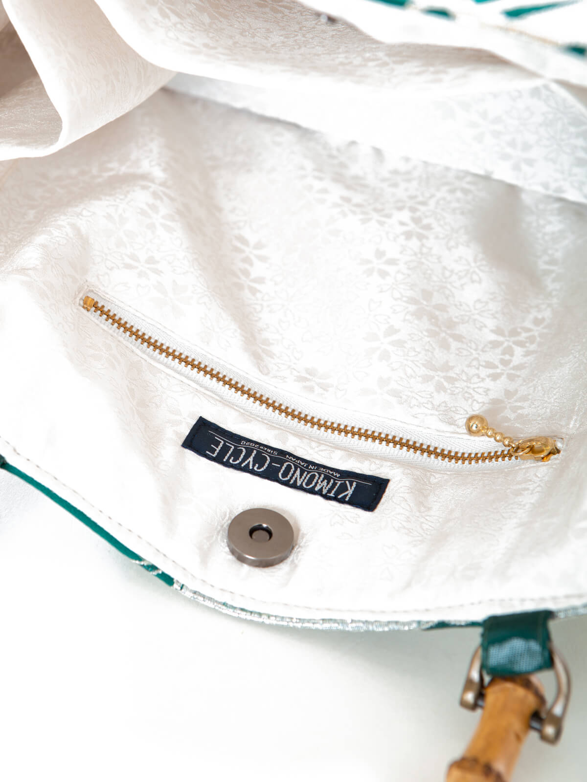 帯地:正絹・シルク100% 内側:正絹・シルク100% 取手:竹