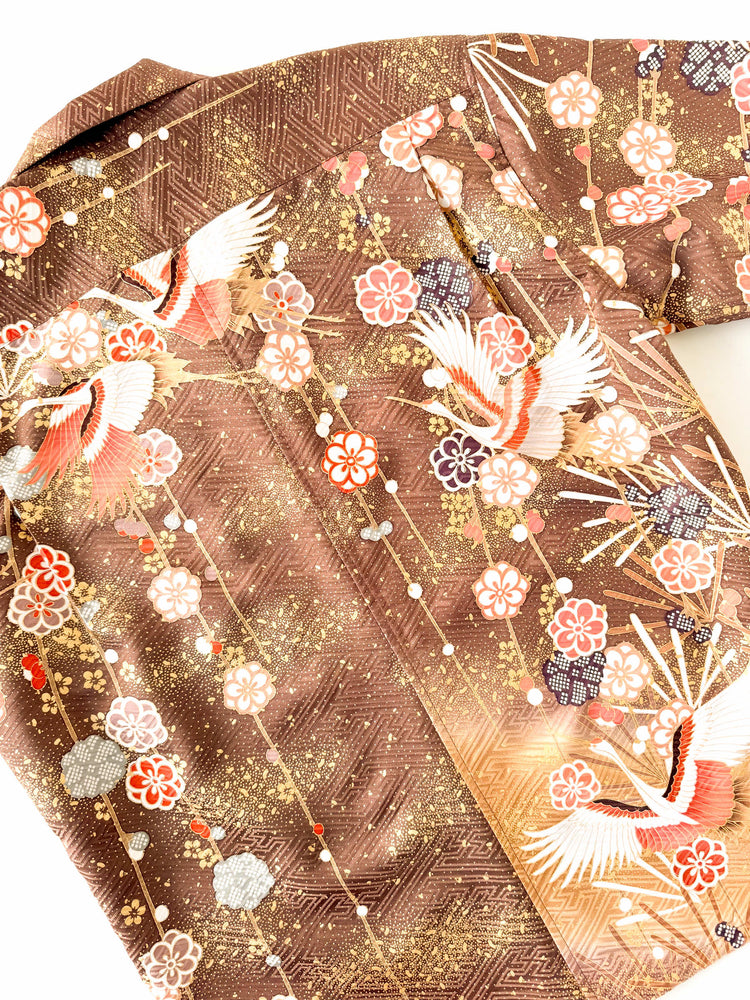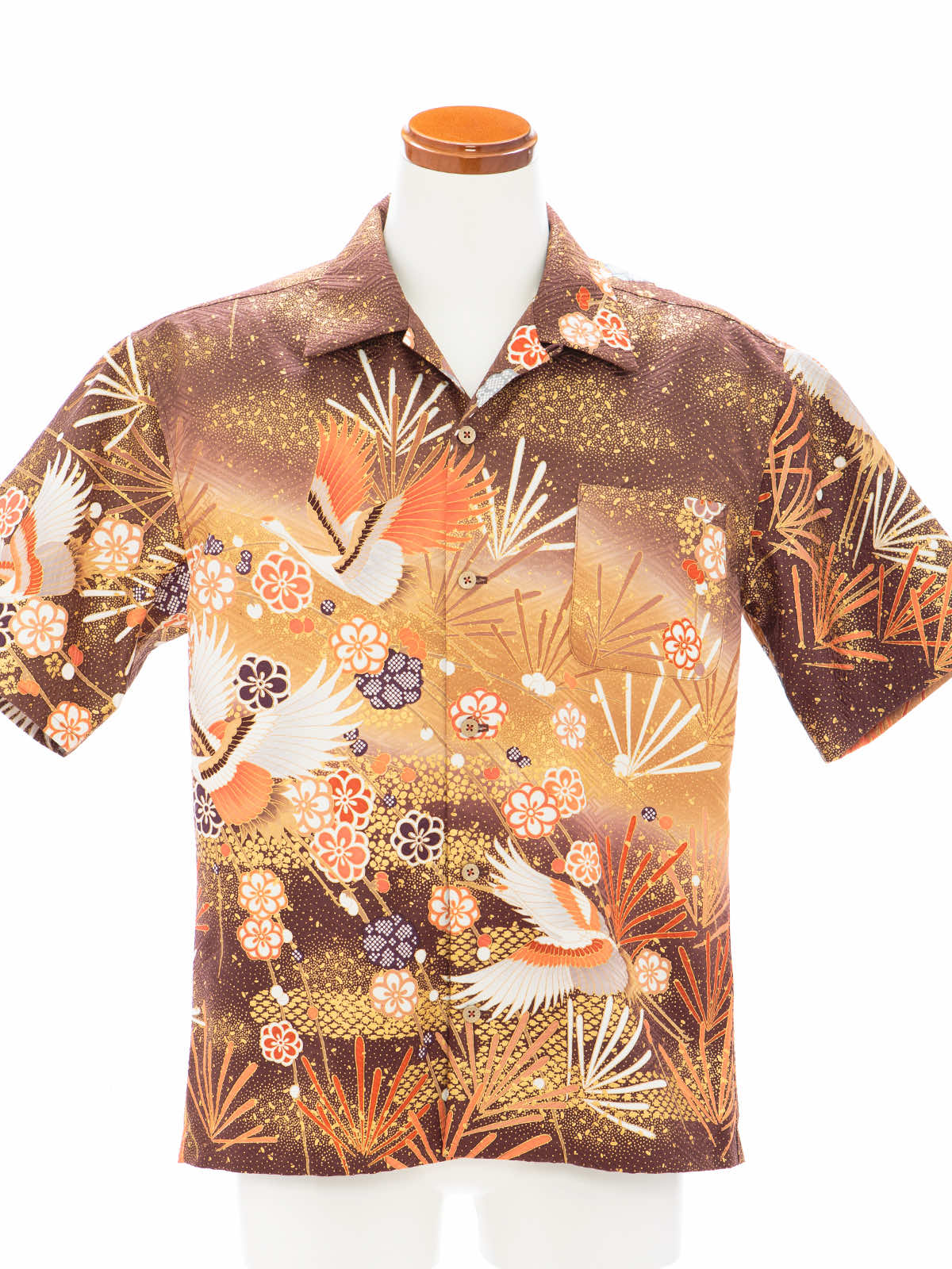 着物アロハシャツ「羽ばたく鶴と梅A」AH100436