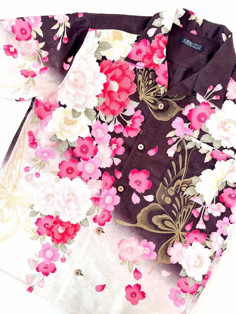 着物アロハシャツ「蝶の漂いA」AH100404